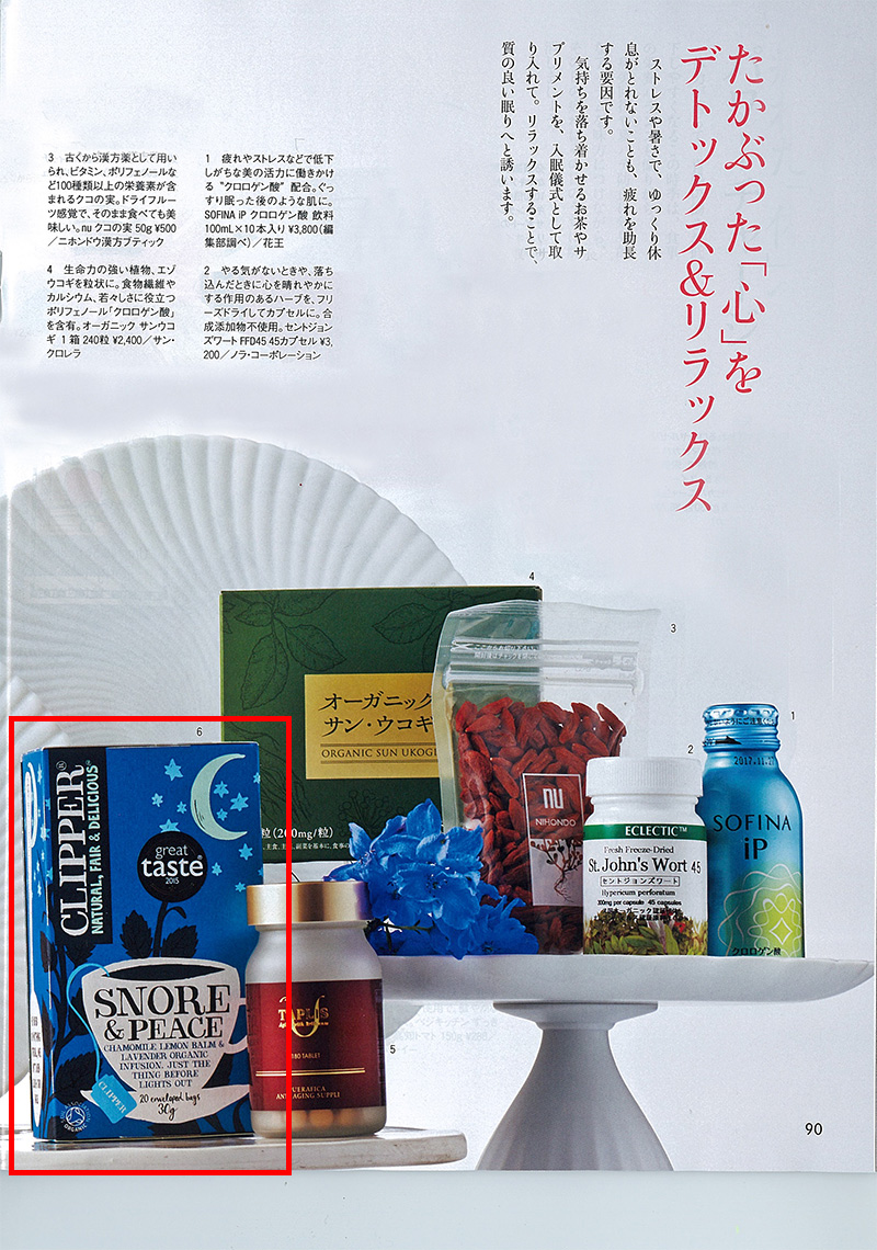 婦人公論8月22日号の真夏のインナーケア特集でクリッパーオーガニックハーブティー スノア&ピースが