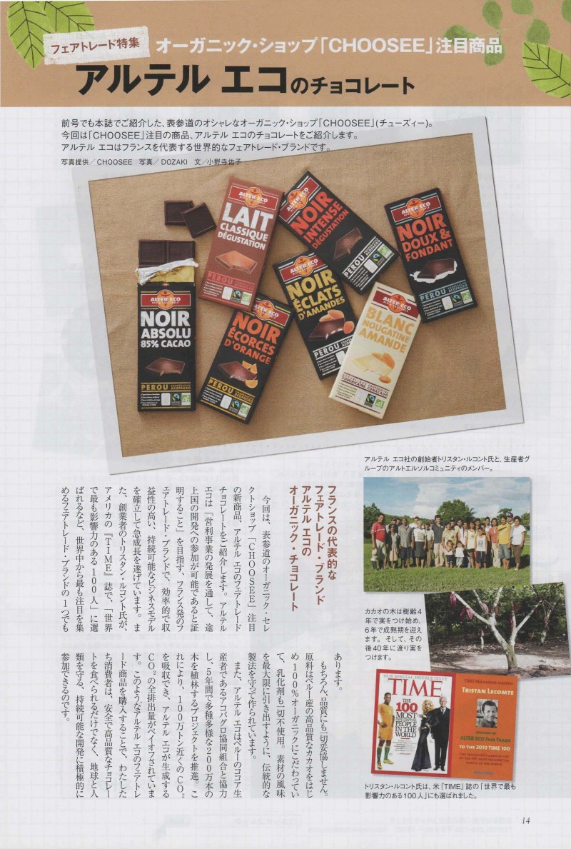 アルテル エコのチョコレートが紹介されました。